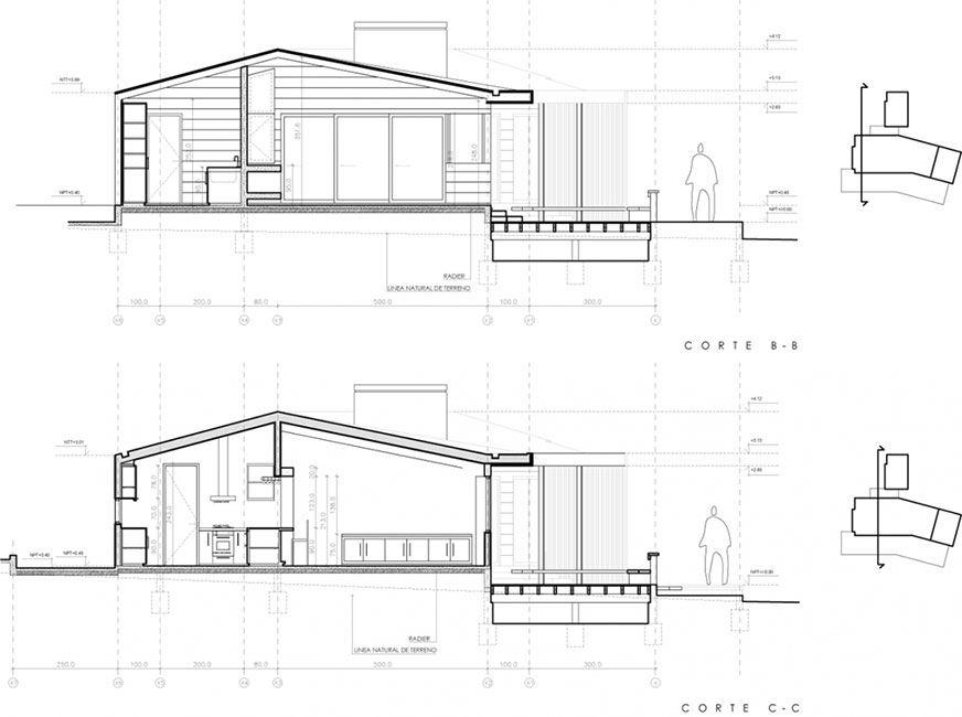 La casa se forma en función de las principales vistas hacia el mar y las direcciones predominantes del viento. Como resultado, se crean exteriores protegidos contra el viento y los espacios principales son más de ver el punto de surf de Punta de Lobos. Los materiales y los detalles de la construcción, se enfocan en la resistencia a las condiciones de la playa.