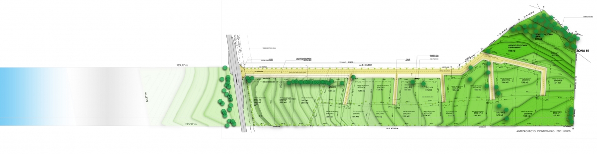 En la Casa Zócalo, este elemento construye una plataforma, la cual conforma un espacio exterior para la casa con terrazas protegidas del viento sur y áreas verdes controladas, limitando el área de riego, debido a la escasez de agua en la zona.