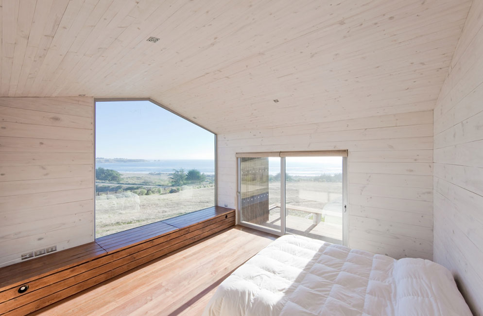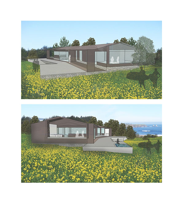 Con una vista predominante hacia Punta de Lobos, el volumen se emplaza de manera de que la mayor cantidad de recintos miren hacia el mar, pero con un quiebre en éste se busca proteger de los vientos del sur la fachada nor-poniente y sin perder la vista.