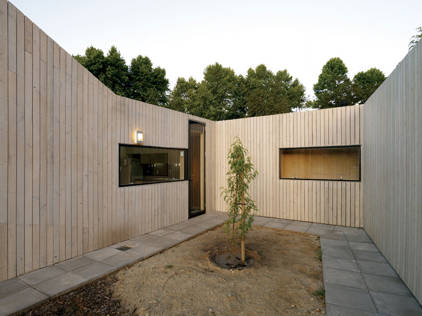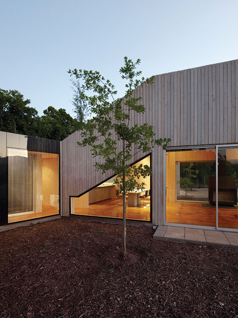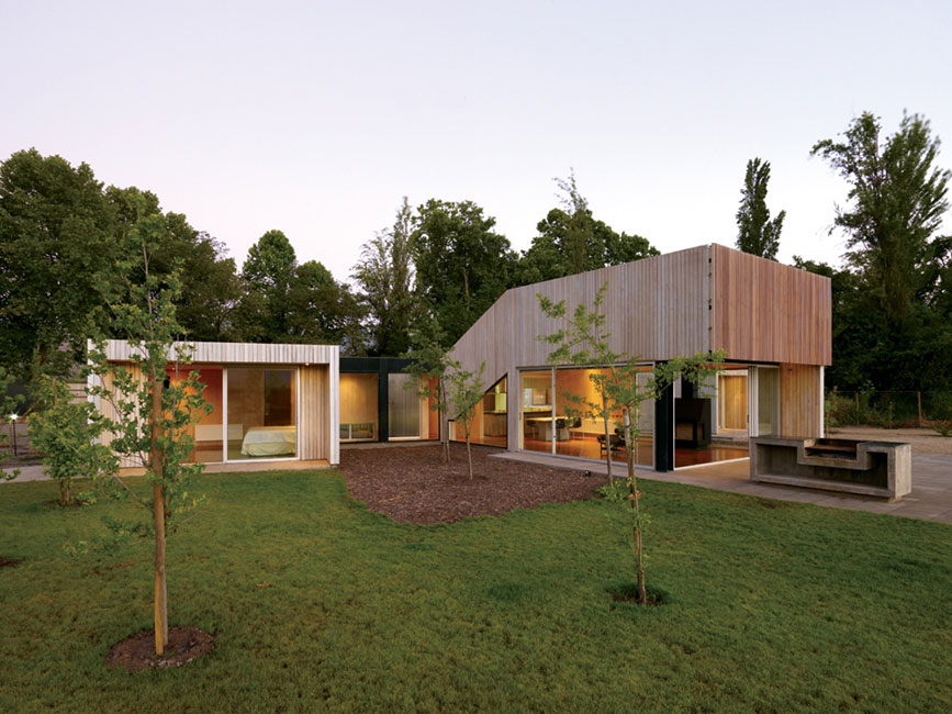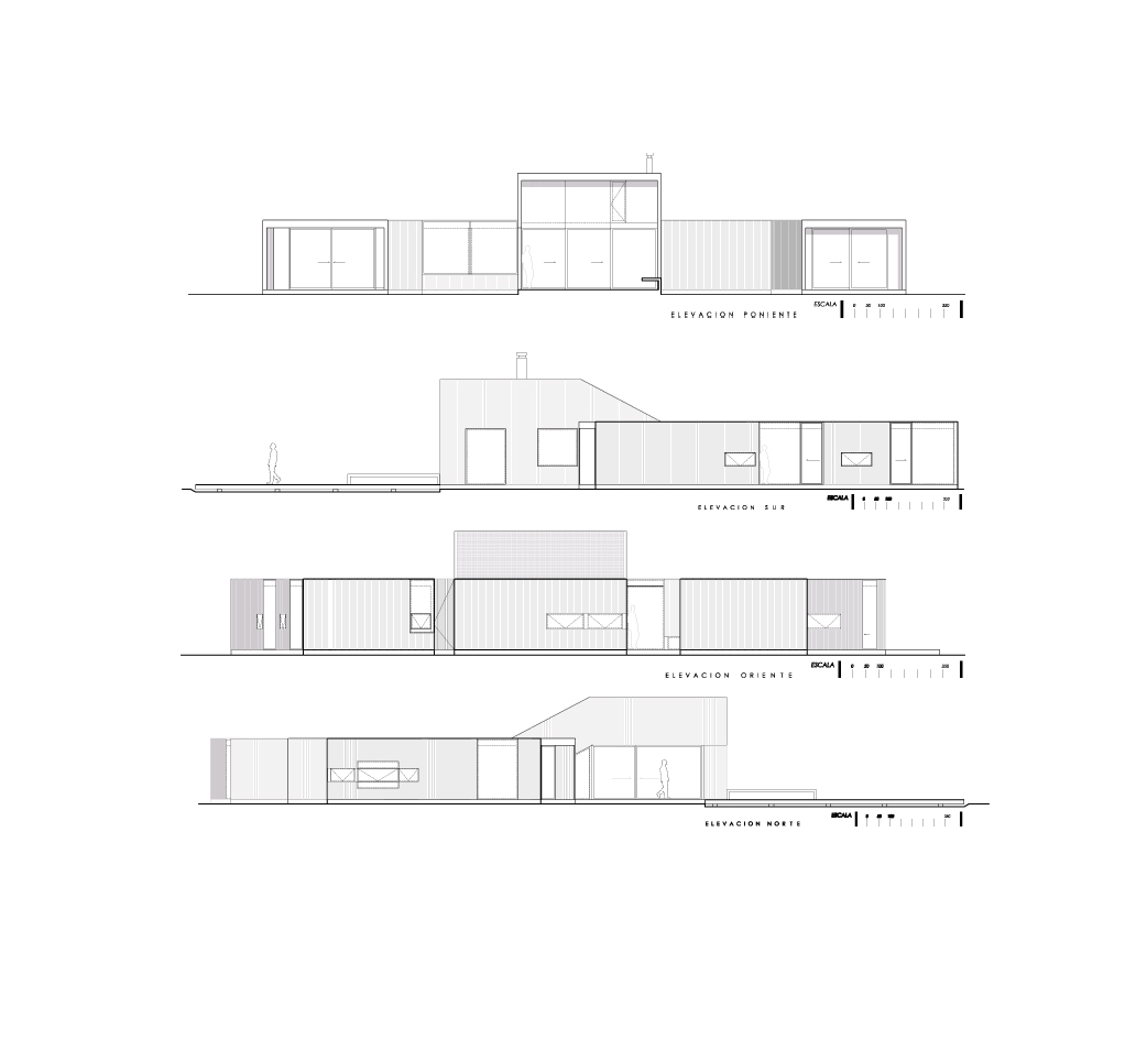 Para esto, aplicamos una estrategia denominada finger joint. Concepto joint: punto en el cual las partes de una estructura artificial se unen. En este caso, sería: arquitectura (artificial) + terreno modelado. Los volúmenes se entrelazan (finger joint) con el terreno, modelando un nuevo paisaje. La separación de los volúmenes crea espacios “vacíos”, que sirven de distintas maneras para la casa.