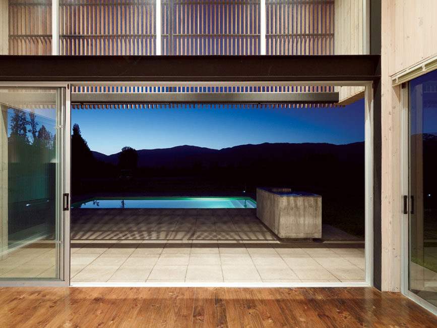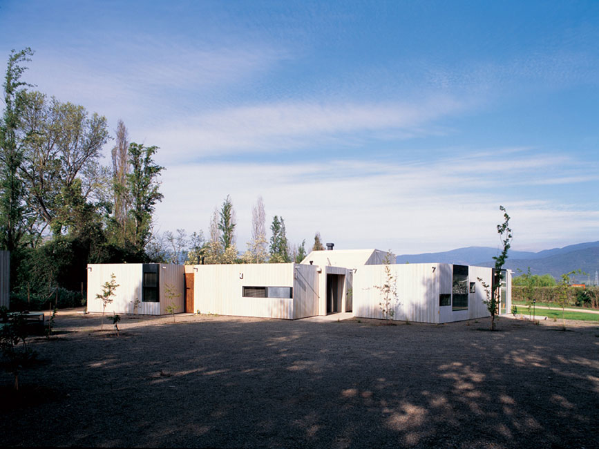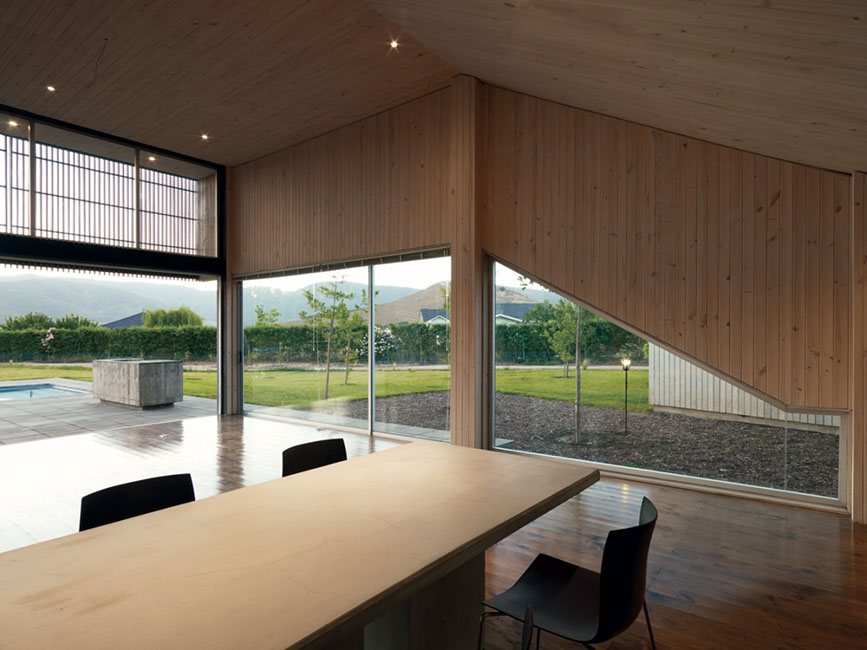 El espacio interior, contenido por la nave central, se proyecta hacia los patios que lo rodean, extendiéndose hacia la naturaleza. Los volúmenes están orientados hacia las principales vistas: los cerros y viñedos.