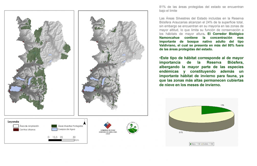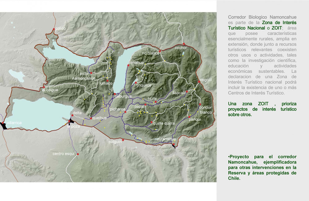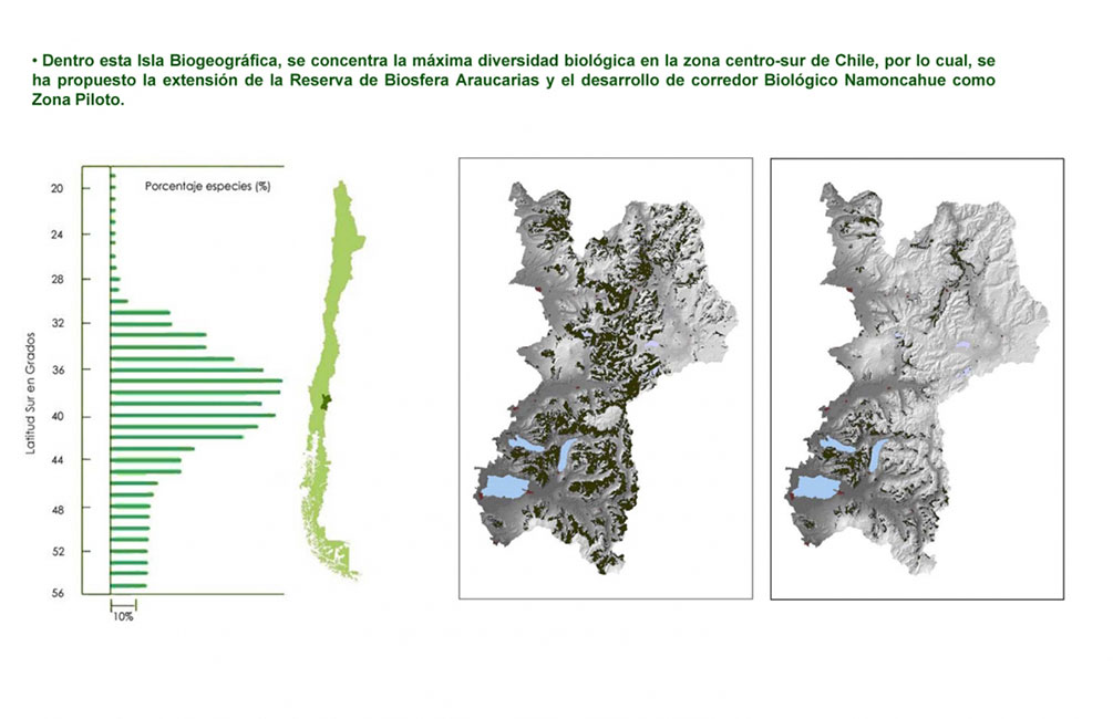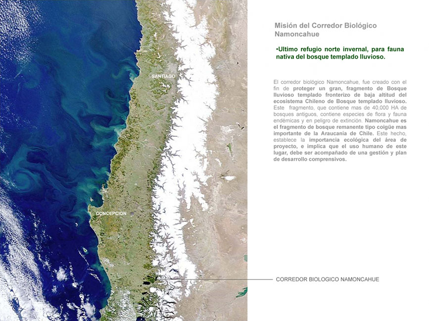 El plan maestro para el área de conservación del Corredor Biológico Namoncahue (30,000 ha.), está inserto en la Reserva de la Biosfera Araucarias. Uno de los 25 hot spots mundiales de la conservación según la WWF. Esta iniciativa gestionada por CPPCh, ha logrado articular tierras de la Corporación Parques para Chile, Rainforest Concern, CONAF y propietarios privados, siendo un proyecto de este tipo, pionero de conservación en Chile.