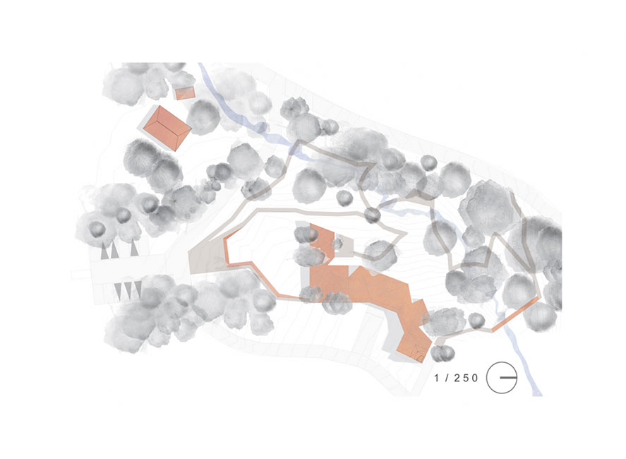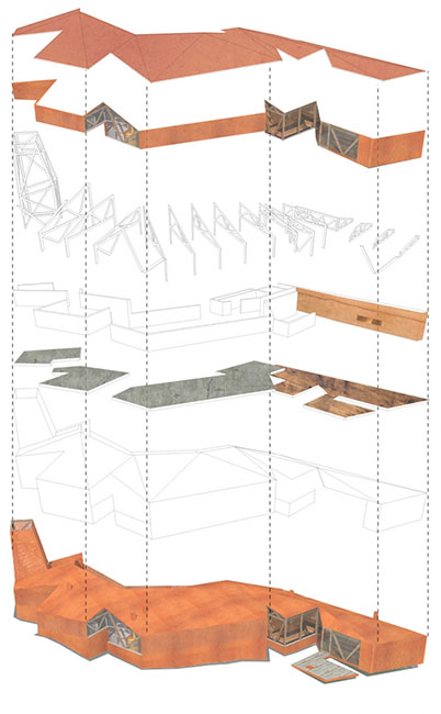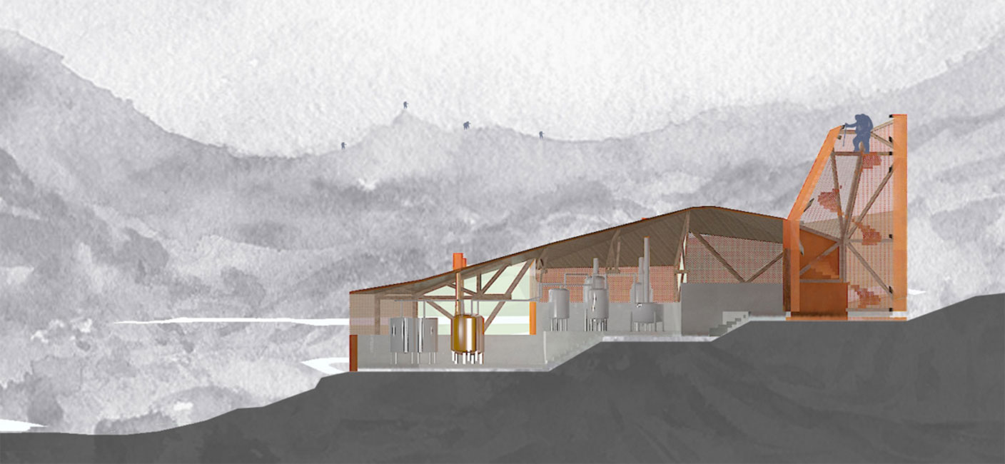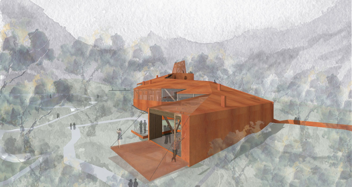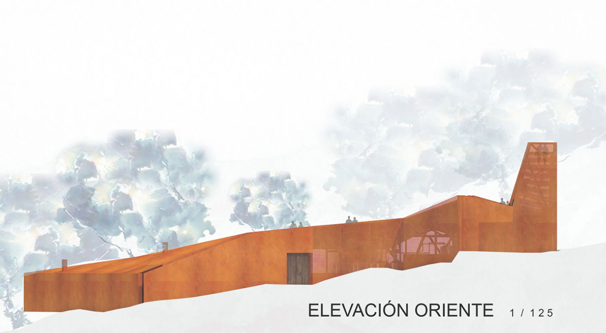 Desde el emplazamiento en un espacio “V”, que homologa el contexto mayor del valle fluvial cordillerano, el proyecto pretende construir no sólo un edificio habitable, sino que también un paisaje construido habitable, que reviva la experiencia de transitar desde la base hasta la cumbre de la montaña y los sucesos que puedan ocurrir en esta cruzada.