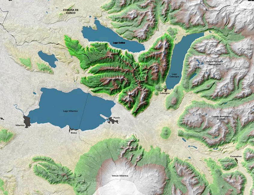 Ubicación: Reserva de la biosfera araucarias, región de La Araucanía (entre el lago Colico, Caburga y Villarica)